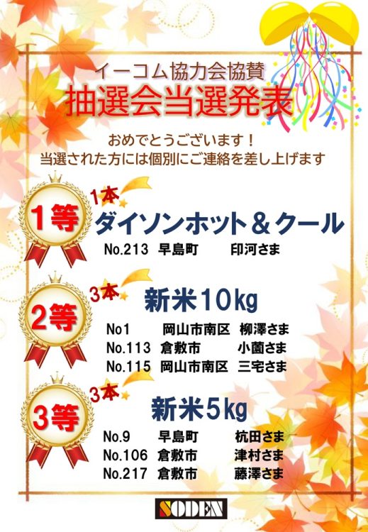 最終日の今日は、イーコム会協賛の大抽選会が執り行われ、秋の収穫祭は大盛況の末終了しました。大勢の方々にご参加いただき、有難うございました☆☆☆