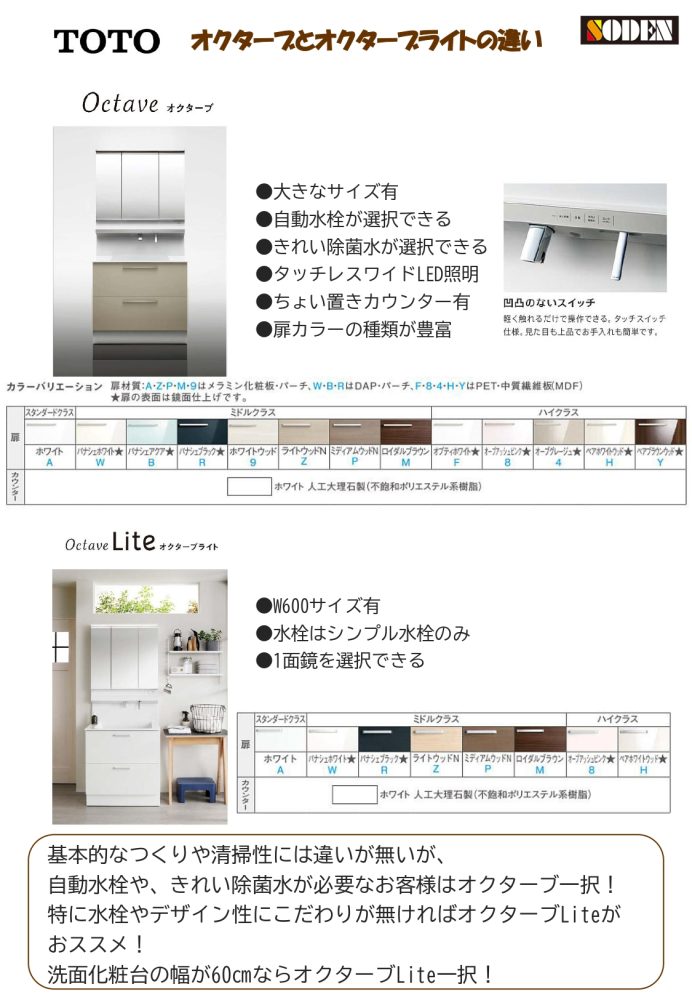 TOTO洗面化粧台「オクターブ」には3種類あります。