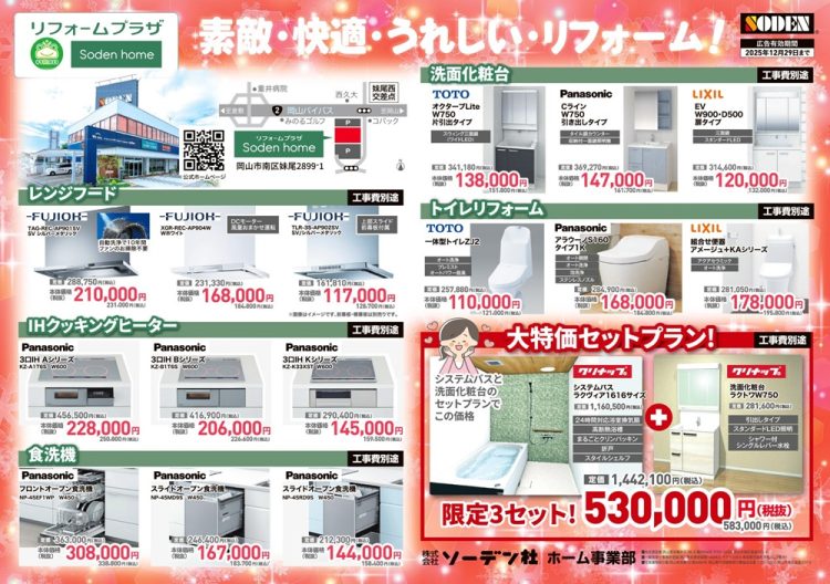 展示品特別価格商品や、洗面・浴室を暖かくする暖房、限定3セットのクリナップシステムバスと洗面化粧台のお得なセットなど、お買い得な相談会になっています☆☆☆