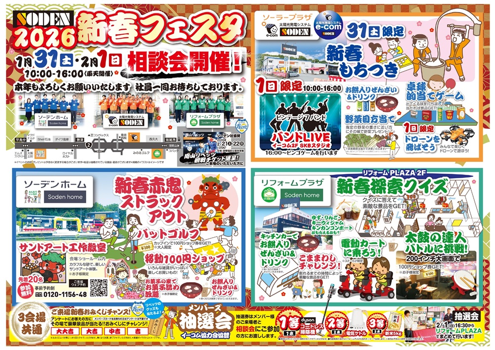 1月31日(土)・2月1日(日)、10時から16時までの2日間新春フェスタを開催します☆☆☆
