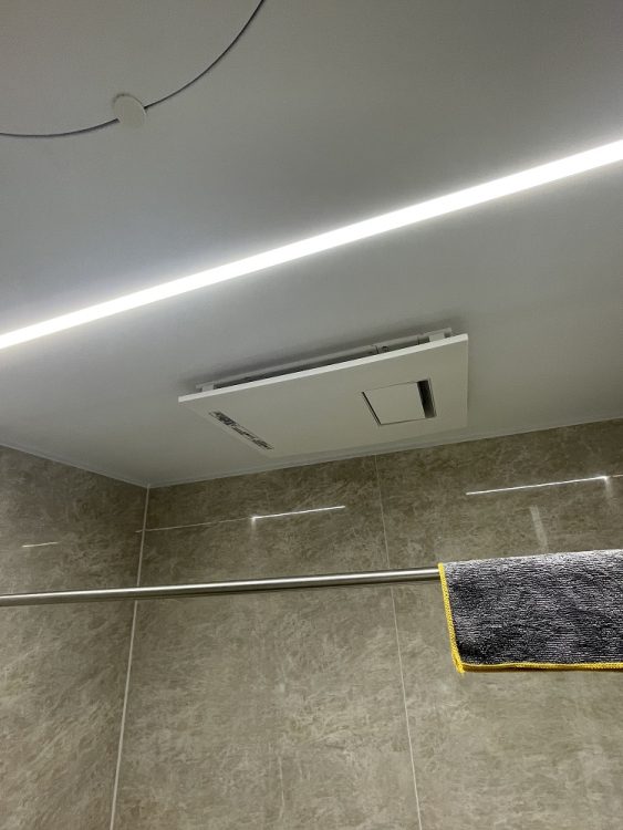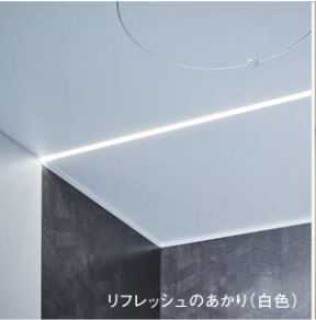 浴室暖房乾燥機と床暖房で冬も安心。照明器具は天井に調色機能付フラットラインLED照明に。