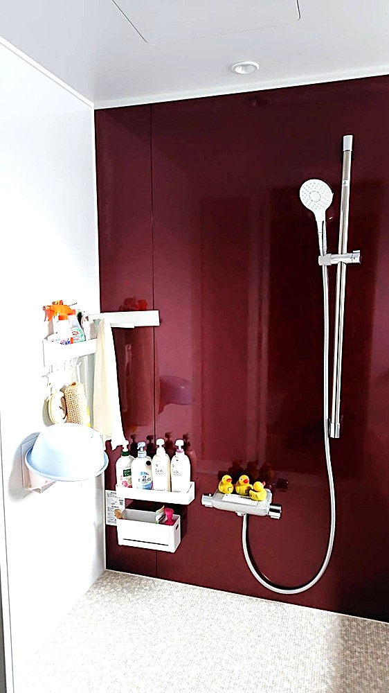 ワインレッドのアクセントパネルが素敵なバスルームに☆